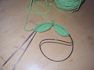 And, finally, a late start on some socks that I wasn't sure if I was going to make at all - but I kind of wanted to.... I'm in a yahoo group, I think I have a sidebar link to it, called "Six Sox Knitalong" - the premise is you make six pairs of socks in a year, one new pattern every two months. Now, the months aren't even with the calendar year - that is, the new pattern will be put up on February 1, 2012. The current patter, called "Woolie Wellies" was posted December 1, 2011... It is done on a heavier weight sock yarn - the recommended is "Big Fabel" from Drops. I like making the heavier socks - just didn't have any yarn handy, and was toying with the idea of doing or not doing the socks. The intriguing part is they are toe up socks. I haven't actually accomplished a pair of toe up socks yet. I've started a few, but haven't finished. So, since I now have some leftover Cascade 220 in lime green (again, the pic I'm about to post doesn't do it justice, but I think I managed to come close when I shared the hat and mitts last month), I thought I'd give the pattern a try. I started them last night, using for the first time, "Judy's Magic Cast On" (knitty.com has the directions). I followed the directions exactly, and really wish I hadn't - it involves a knot, that is quite prominent... I am not sure if I want to just go ahead with these and hope I can still wear the socks, or if I want to restart... I'm not that far along... Oh, and one toe has a stretched out stitch in one of the stitches from the cast on. I may just try to fix the toes later. I really am not wanting, despite the few rows involved, to rip it out.... I do need to get a bit further along, to determine where that knot will fall when the sock toe is on my foot, to determine if it will be a problem or not. Plus, if I want to finish them before the end of the month, along with the three other pair of socks that I want to do before the end of the month, then I really shouldn't waste too much time deciding...